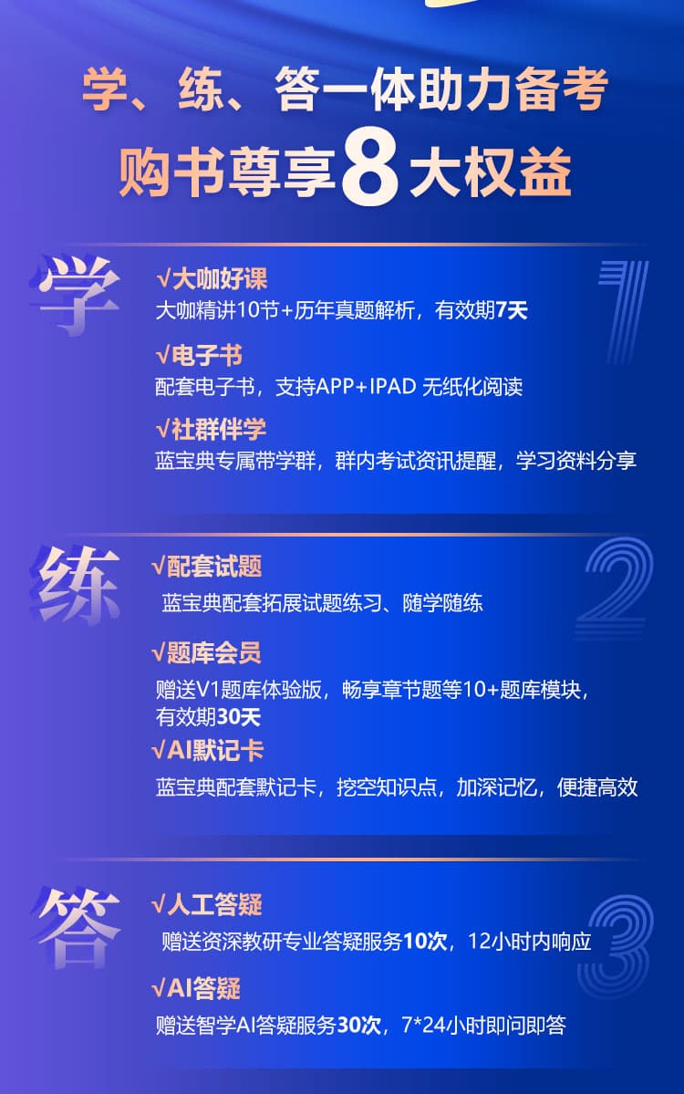 2、赠送30天V1体验版题库会员,随书赠送的题库会员,购书后自动开通,自付款日起计算。