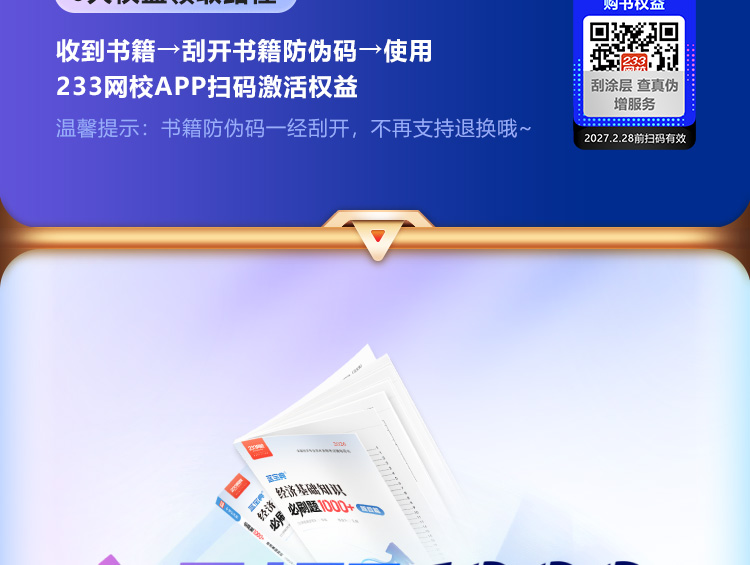使用233网校APP扫码书籍封面防伪码,即可领取随书赠送的6大增值权益。