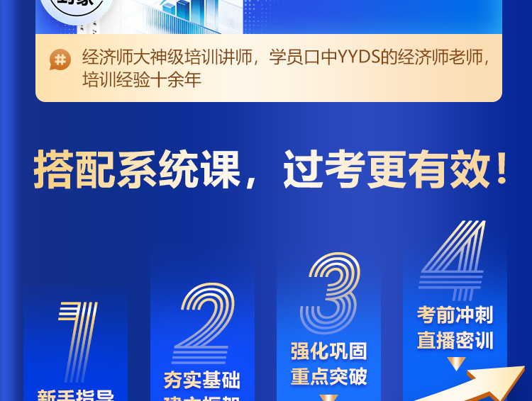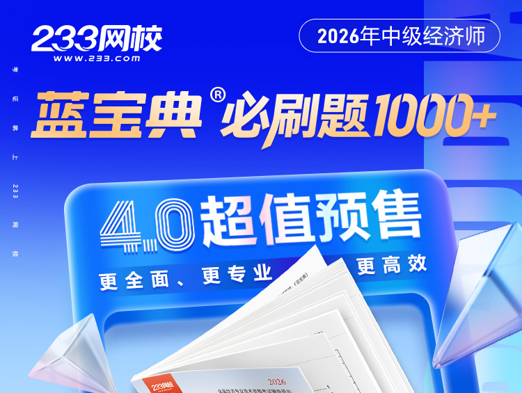 《蓝宝典》搭配233网校独有的4阶体系化课程,在预习-基础-强化-冲刺4个阶段都能发挥至关重要的作用,通过经济师考试,事半功倍。
